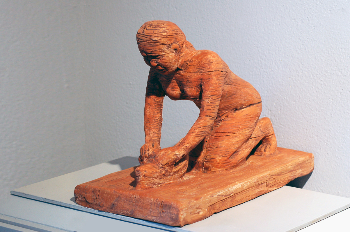 Replica of an ancient Greek figurine of a woman baking, early 5th century BC