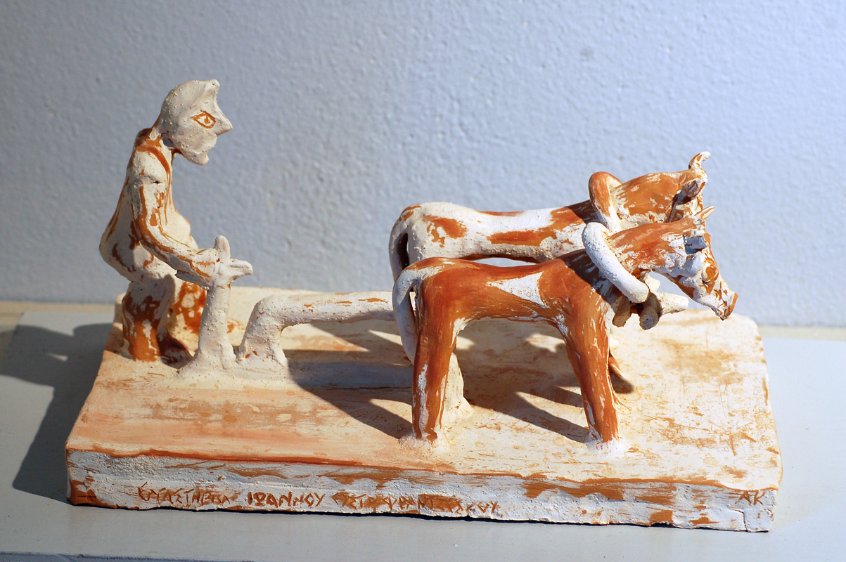 Replica of a Theban clay figurine of a ploughman, early 6th century BC.